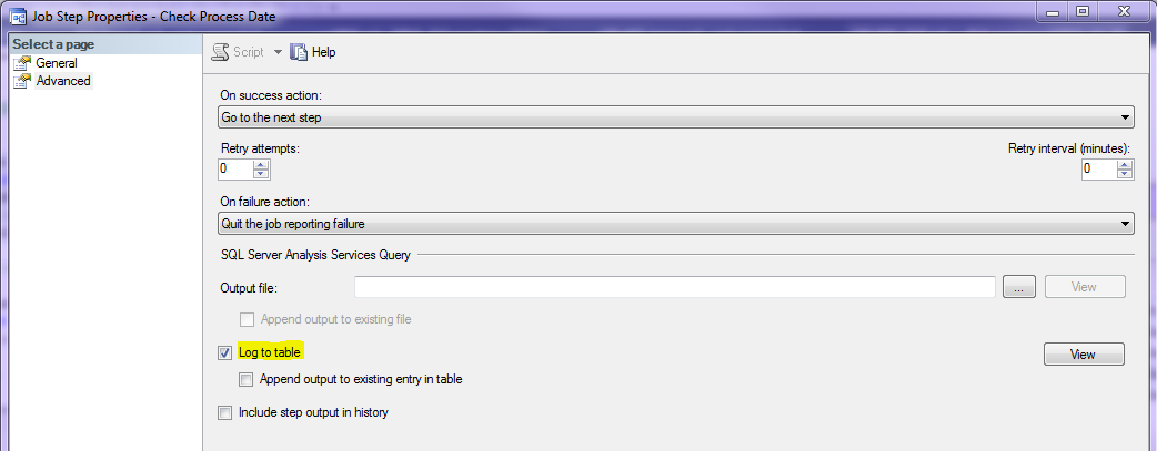 Esto registra la salida del paso del trabajo (Nuestra Base de Datos y última fecha procesada) a la tabla [msdb].[dbo].[sysjobstepslogs]. Nosotros añadiremos entonces la lógica al paso del correo electrónico para encontrar y retornar estos valores.