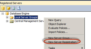 Figura 1. Registered Servers Usted puede crear un Nuevos Grupos de Servidores o usar la carpeta actual Local Server Groups. En este ejemplo, vamos a usar el grupo de carpetas existente y añadir New Server Registration a este grupo.