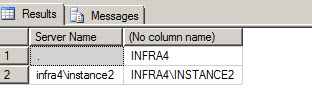 1select @@servernameLa consulta mostrará los diferentes nombres del servidor.