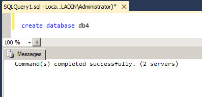 1create database db4 Si usted corre la consulta, obtendrá un mensaje de éxito o error.