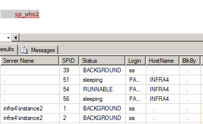 Figura 8. Los usuarios actuales, sesiones y procesos de todas las instancias SQL Server Si usted tiene las mismas bases de datos en el Servidor con las mismas tablas, usted puede verificar la fragmentación en todos los servidores. El siguiente ejemplo muestra cómo revisar que el porcentaje de fragmentación promedio sea más alto que 30% en la tabla Person.Address de la base de datos AdventureWorks2014: