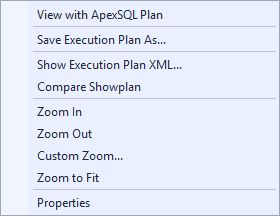 Después de instalar esta herramienta, es posible que usted requiera reiniciar SQL Server Management Studio, así que es mejor que lo instale y vuelva a ejecutar la consulta para obtener un Plan de ejecución. Aquí se proporciona un recorrido de captura de pantalla para esta herramienta. Después de ejecutar la consulta, haga clic en el botón derecho en el plan de ejecución y tendrá la opción de “Ver con el ApexSQL Plan“.