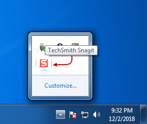 Cerrar (x) SnagIt en el área de notificación y aún podrás utilizarlo cada vez que se utilice la tecla imprimir pantalla: