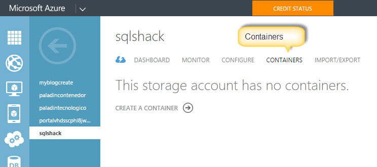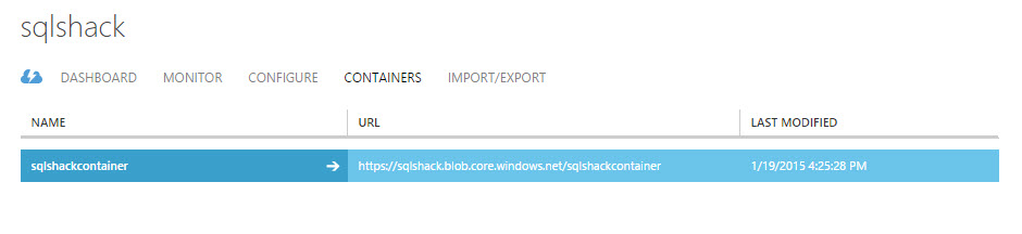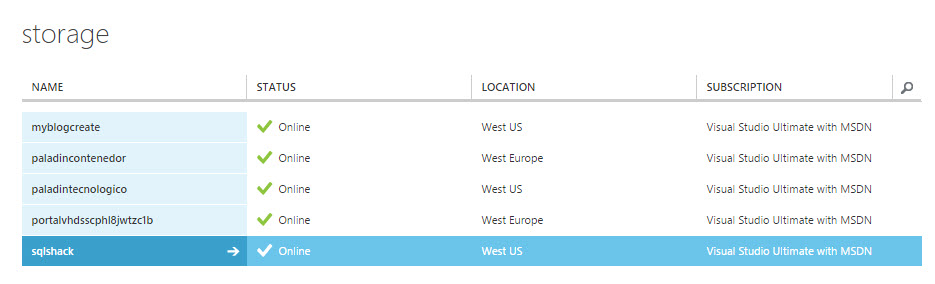 Si todo está bien, un nuevo Almacenamiento será creado. Haga clic en el enlace sqlshack recién creado.