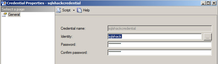 CREATE CREDENTIAL [sqlshackcredential] WITH IDENTITY = N'sqlshack', SECRET = N'asssssddddddffqqq' GO |