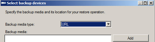 En Backup media type, seleccione la opción URL y presione el botón Add.