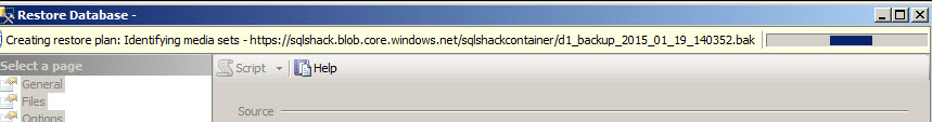 USE [master] RESTORE DATABASE [d1] FROM URL = N'https://sqlshack.blob.core.windows.net/sqlshackcontainer/d1_backup_2015_01_19_140352.bak' WITH CREDENTIAL = N'sqlshackcredential' , FILE = 1, NOUNLOAD, STATS = 5 GO |
