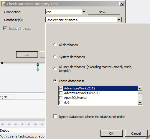 Figura 6 Haga clic en el cuadro combinado Databases y seleccione la Base de Datos a respaldar. Como puede ver, usted puede seleccionar la integridad de muchas bases de datos con una sola tarea y respaldar bases de datos del sistema.