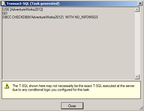 Figura 8 La tarea ejecuta la sentencia DBCC CHECKDB.
