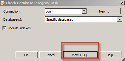 Figura 7 Si usted presiona View T-SQL, tendrá la oportunidad de ver el comando T-SQL equivalente a la acción de la Tarea.
