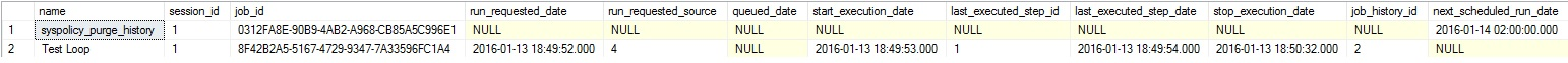 SELECT sysjobs.name, sysjobactivity.* FROM msdb.dbo.sysjobactivity INNER JOIN msdb.dbo.sysjobs ON sysjobactivity.job_id = sysjobs.job_id |