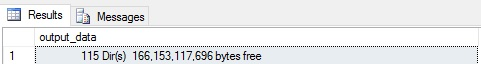 DECLARE @results TABLE (output_data NVARCHAR(MAX)); INSERT INTO @results (output_data) EXEC xp_cmdshell 'DIR C:'; SELECT * FROM @results WHERE output_data LIKE '%bytes free%'; |