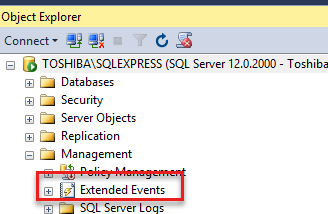 En SQL Server Management Studio (SSMS), vaya a Management>Extended Events: