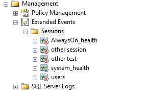 Figura 1. SSMS, Extended Events Expanda la vista de árbol de Extended Events: