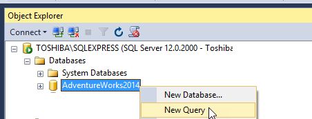 Figura 14. Creando una nueva consulta Ejecute la siguiente consulta para crear una base de datos. Este evento activará nuestro evento recién creado: