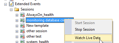 Figura 15. La consulta T-SQL para crear una nueva base de datos Haga clic derecho en la nueva sesión creada y seleccione Watch Live Data: