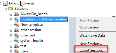 En esta demostración, crearemos un XE para detectar la base de datos creada.