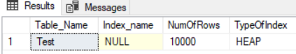 De los resultados de consulta anterior, identifica las tablas de montón grandes y crea un índice Agrupado en estas tablas para mejorar el rendimiento de la lectura de las consultas de estas tablas. El resultado en nuestro caso será como el mostrado abajo: