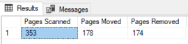 El resultado retornado del comando, muestra el número de páginas que son escaneadas, movidas y removidas durante el proceso de desfragmentación, como se muestra abajo: