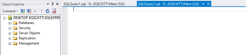 Al abrir el editor de consultas e información en SSMS 2016, lo primero que se observa es la figura cuadrada gris que rodea la posición actual del cursor: