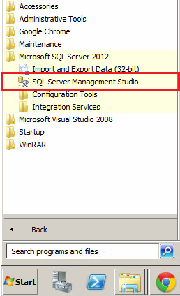 Para verificar si SQL Server Management Studio (SSMS) se ha instalado exitosamente, usted necesita seleccionar el menú de inicio de su servidor y después seleccionar el menú SQL Server 2012. Usted encontrará el enlace a SQL Server Management Studio ahí.
