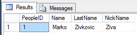 INSERT dbo.People (PeopleID, Name, LastName, NickName) VALUES (2, ‘Alan’, ‘Beker’, ‘Al’)