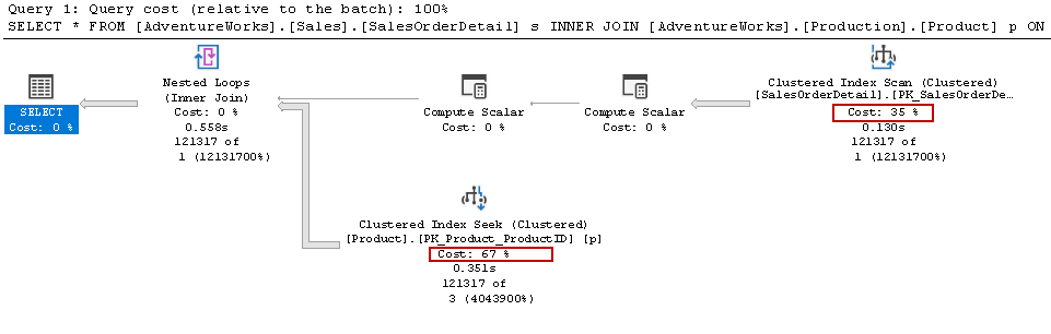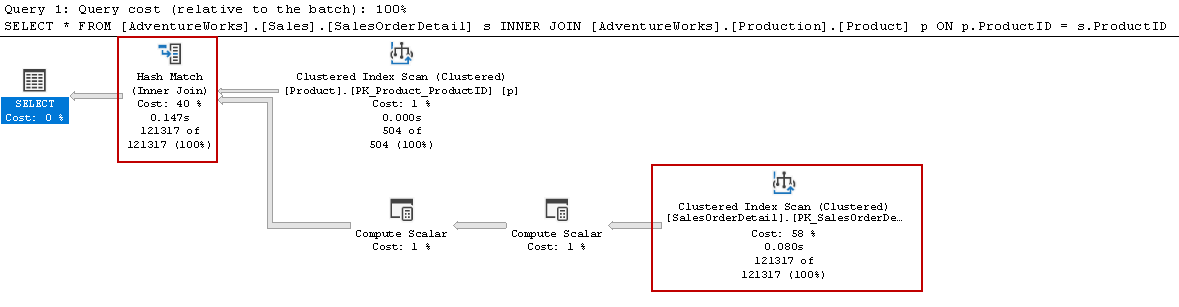 SET STATISTICS IO, TIME ON SELECT * FROM [AdventureWorks].[Sales].[SalesOrderDetail] s INNER JOIN [AdventureWorks].[Production].[Product] p ON p.ProductID = s.ProductID; |