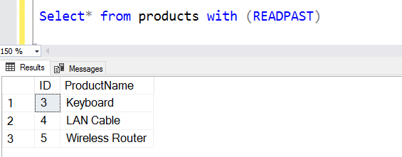 Let’s run another select statement, but this time use READPAST query hint. Look at the output. We have not put a where clause in the select statement to filter the records, but still, it shows only three records in the table.