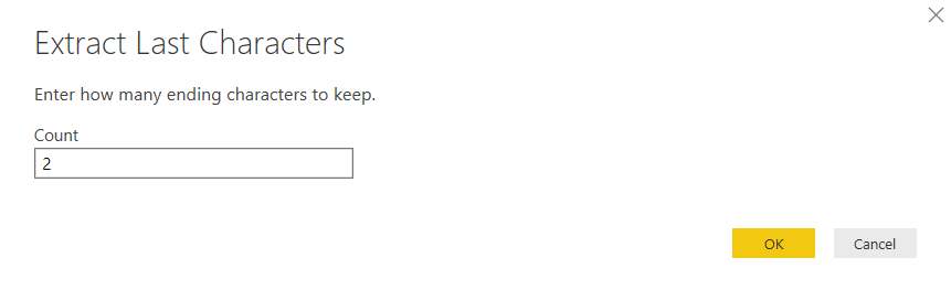 In the “Extract Last Characters” dialogue box, enter 2 and then click OK.