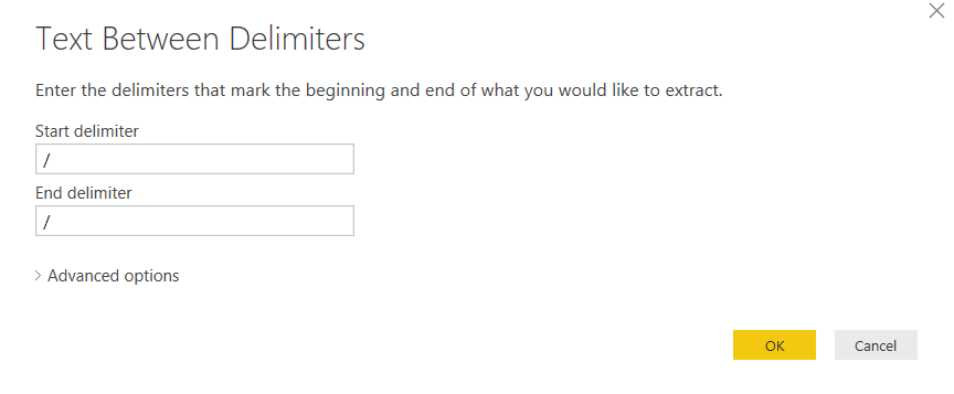 Enter a forward slash “/” in both the “Start delimiter” and “End delimiter” fields as depicted by the following figure and click the “OK” button. This selects what is between the first two forward slashes in the field.