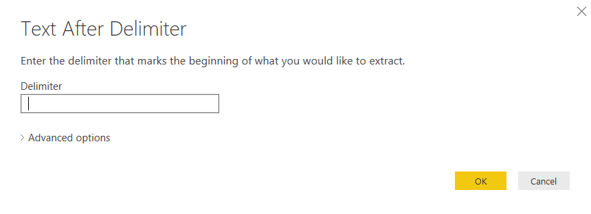 We want to extract the text that exists after a single space. In the dialogue box that has appeared (shown below), enter a single space and then click “OK”.