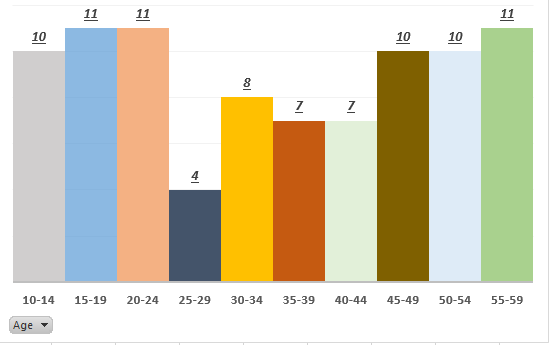 A histogram is the classification of the values in a data group. Histograms allow us to see the frequency distribution of a data set. For example, the following histogram data is created based on the age distribution of people who are visiting a museum per day. Histogram charts are generally used to virtualize histogram data.