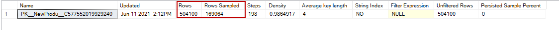 However, the statistic is not updated automaticly because Rows and Rows Sampled columns still show the same values in the statistic header data. Welcome to the real world Auto Update Statistic option is enable but the statistic is not updated.