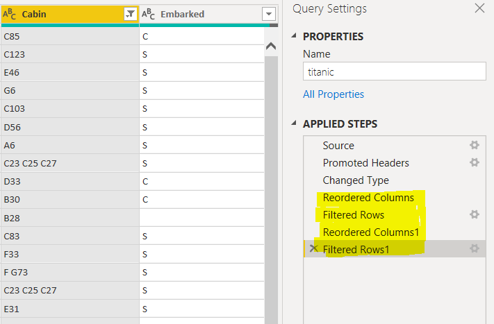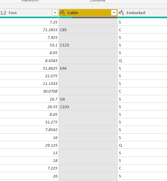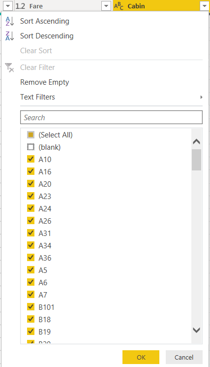 Click the OK button and you will see that all the rows where the Cabin column contains empty values will be removed.