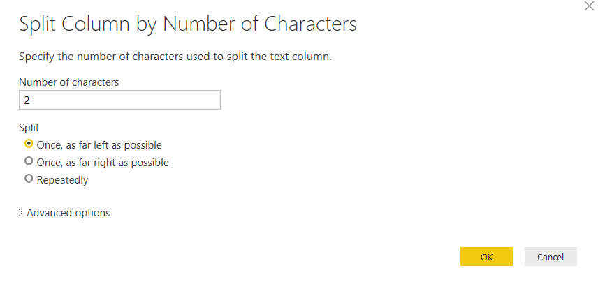 Next, specify the number of characters after which you want to split the values in the original column, as shown below: