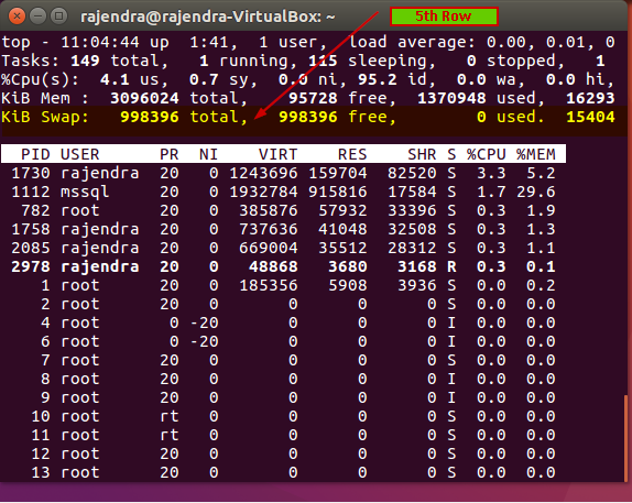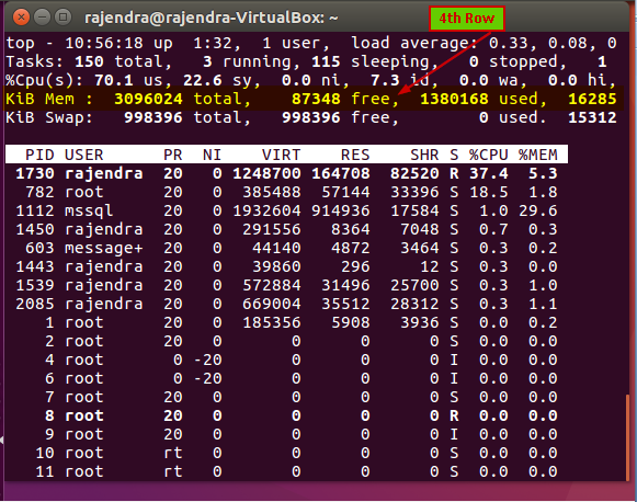 In the fifth row, we get information about the swap memory utilization. We can consider swap memory as the page file in the windows system.