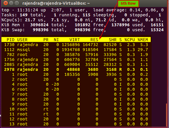 - PR: it is the process priority. We can see value ‘rt’ in this column as well. RT means the process is running real-time