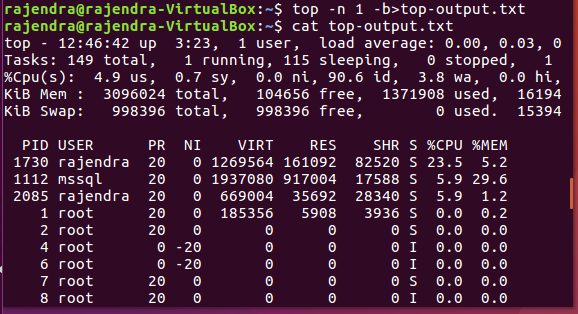 If we want to export the ‘top’ command output, we can do it into the text file with below command.