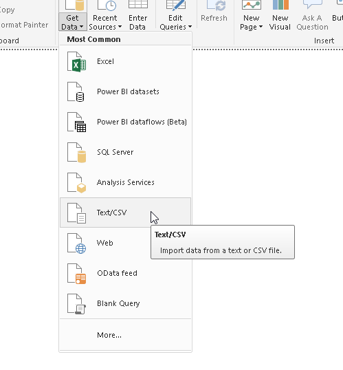 Import CSV data from the ‘Get Data->Text\CSV’ and provide the path of the.CSV file.