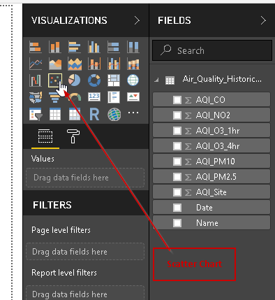 In the above image, bubbles sizes are similar for all bubbles. It does not vary the size of the bubble in according to our data. In the field area, define Size as per our dataset column. For example, in the below chart, we have set Size as AQI_PM10. It changes the scatter chart now with various bubble sizes. These bubbles are overlapping with each other, so it is difficult to get analysis based on the bubble size.