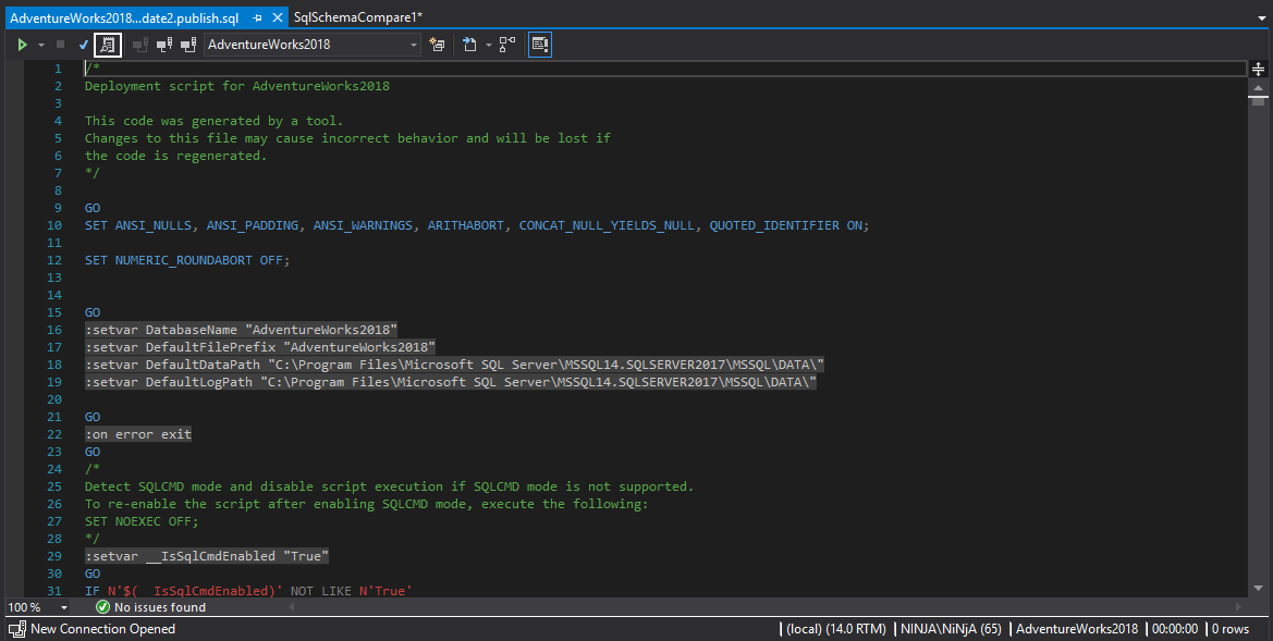In this case, the query window name is AdventureWorks2018_Update2.publish.sql: