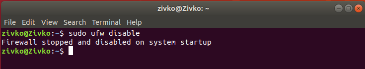 As shown above, the firewall is active. To disable it, type and execute the following command: