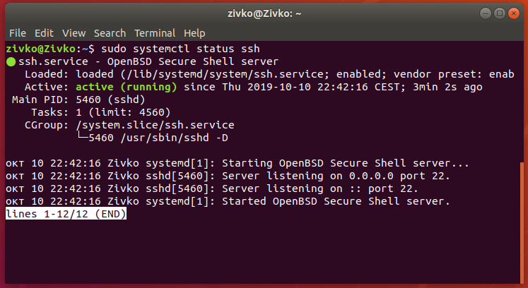 To verify that the installation was successful and the SSH service is running, type and run the sudo systemctl status ssh command:
