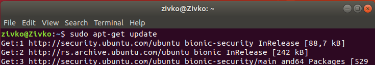 On Linux Ubuntu 18.4, open the Terminal, type the sudo apt-get update command and press the Enter key: