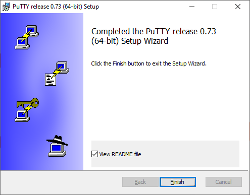 After the successful installation, click the Finish button to close the PuTTY installer: