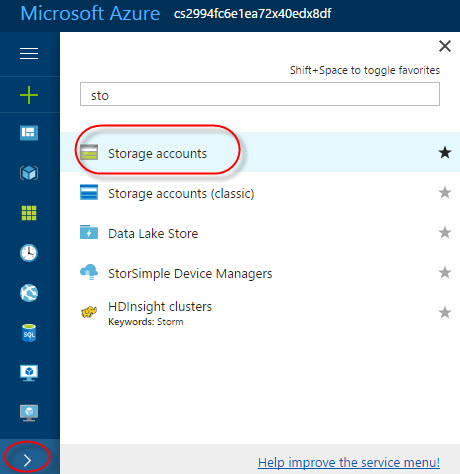 To verify, in the Azure Portal, press the > icon and select Storage accounts: