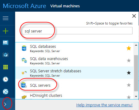 To verify in the Portal, you can click on the > icon and in the search text box write sql server and click on the SQL servers icon: