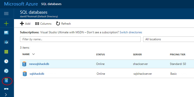 There are two databases, the master database, which is a system database not visible in the Portal UI and the new sqlshackdb.