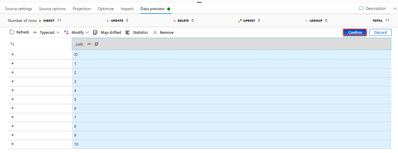 For example, if we click on the ID column below and choose the TypeCast option to change the data type for that column to INT, then click on the Confirm button to proceed, as shown below: