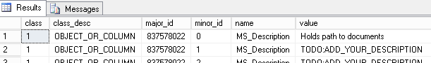 - sys.sp_addextendedproperty